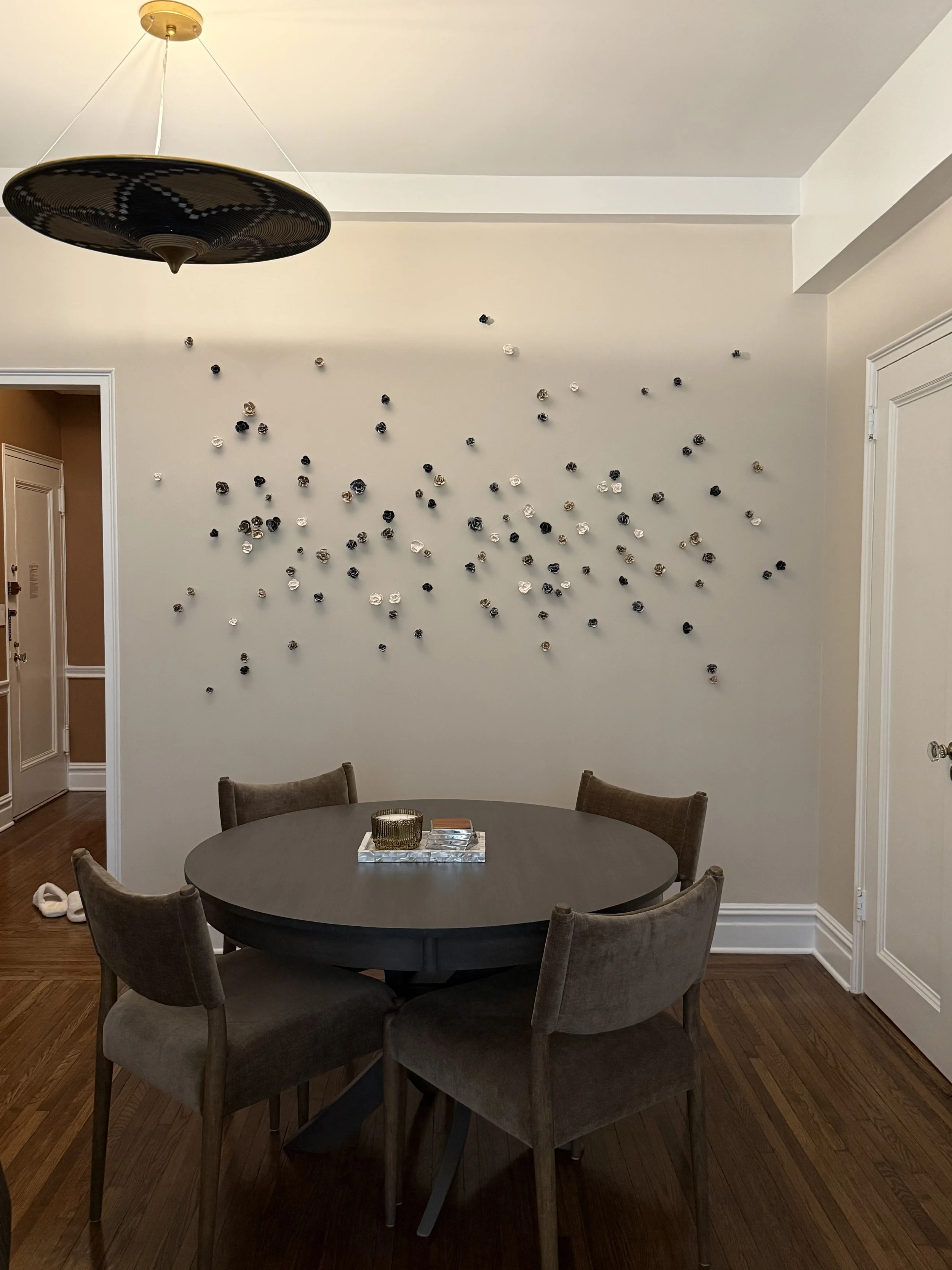 Madeleine has a passion for porcelain and organic elements of nature such as patterns, textures, hues, and the finer elements the earth has to offer. Pulling from the purest form of clay Mother Earth has to offer, porcelain is a unique medium which requires patience and respect, much like the environment it stems from. With a medium that requires manipulation and 2200° temperatures for fortification, the results often produce a timeless transition between traditional and contemporary design. This chic blend of styles lends itself to be presented as small adornments to full scale installations, but none the less leave a lasting statement of style and dynamic design.