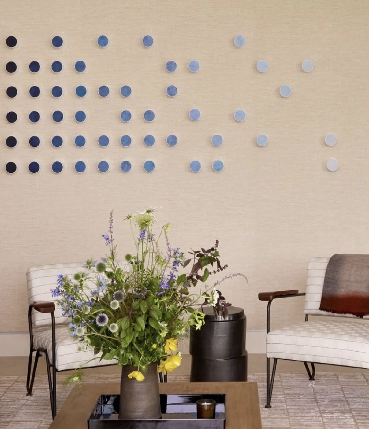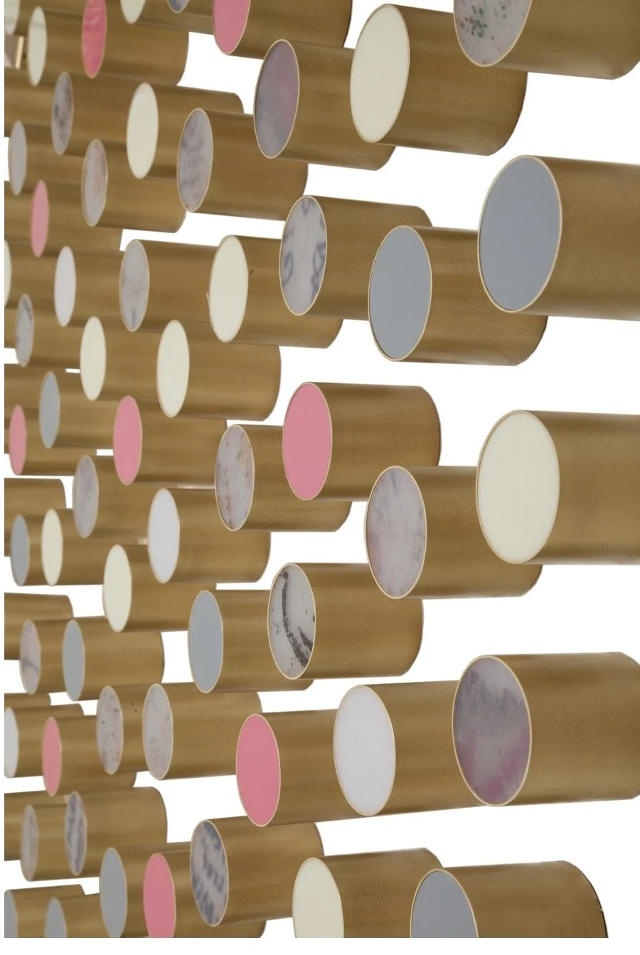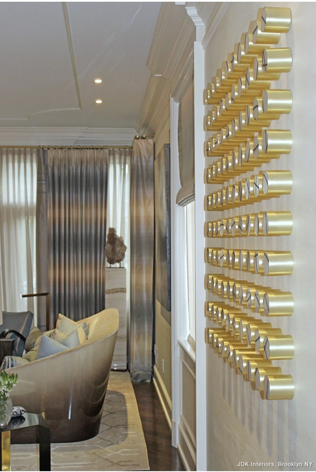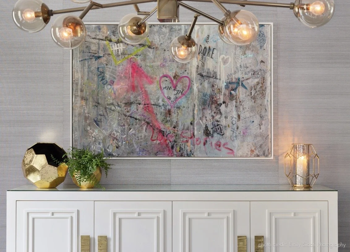 Samantha’s style marries playful yet luxurious design with an impeccable attention to detail and craftsmanship. Her distinctive style juxtaposes refinement (swishing haute couture dresses, the luxe use of brass) with rawness (graffiti, industrial parts) and leaves fairy dust floating in the air. She uses vibrant color to highlight sophistication and glamour, often employing candy-like colors and contrasting textures to enhance the visual effect. Every piece has a brilliant metallic moment. Her work dances with playfulness, blending glamour and beauty with levity and whimsy. Samantha’s sculptural pieces, wall installations and paintings are glistening jewels, the focal point of a home.