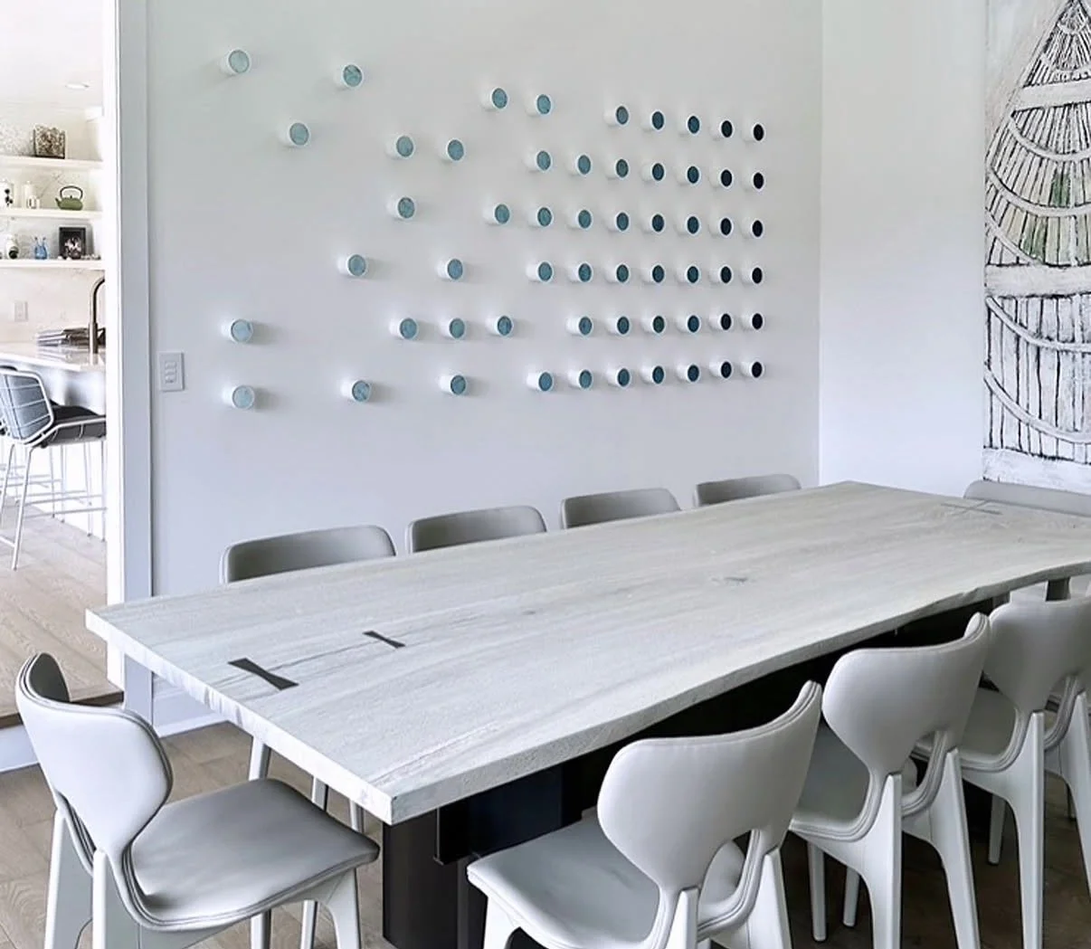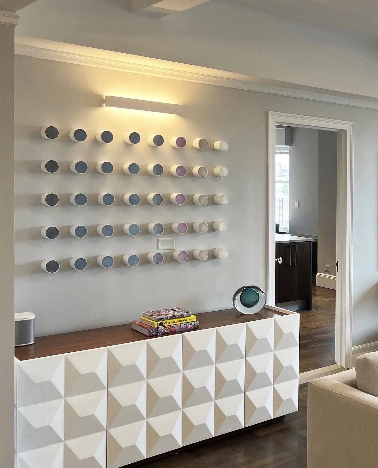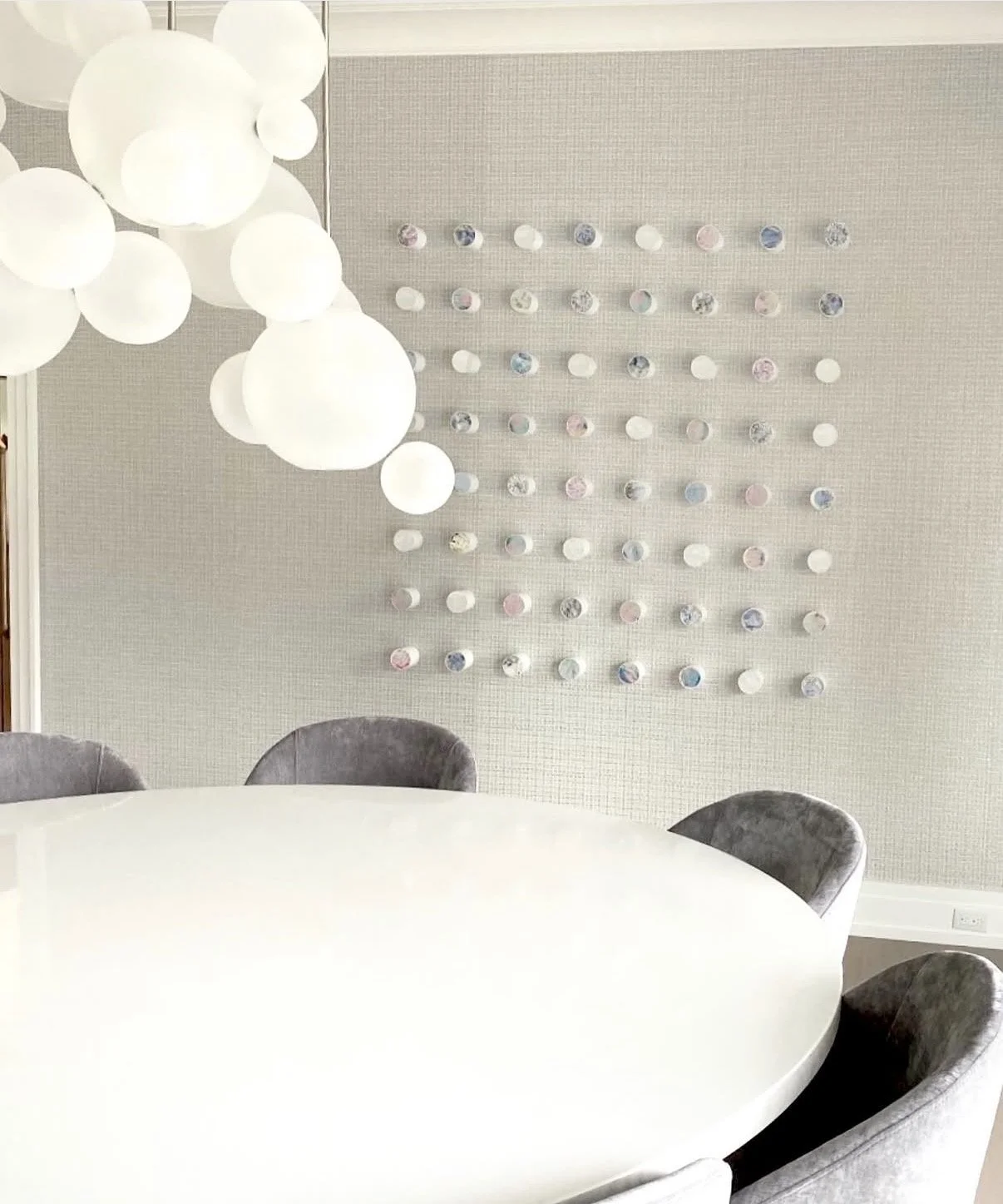 Samantha’s style marries playful yet luxurious design with an impeccable attention to detail and craftsmanship. Her distinctive style juxtaposes refinement (swishing haute couture dresses, the luxe use of brass) with rawness (graffiti, industrial parts) and leaves fairy dust floating in the air. She uses vibrant color to highlight sophistication and glamour, often employing candy-like colors and contrasting textures to enhance the visual effect. Every piece has a brilliant metallic moment. Her work dances with playfulness, blending glamour and beauty with levity and whimsy. Samantha’s sculptural pieces, wall installations and paintings are glistening jewels, the focal point of a home.